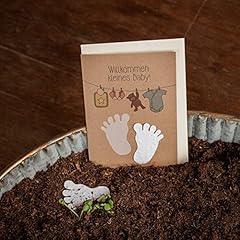 Karte zur Geburt - Klappkarte mit Babyfüßen - mit eingearbeiteten Wildblumensamen - Glückwunschkarte zur Geburt eines Kindes
