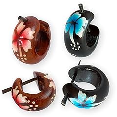 Fly Style Damen Holz-Ohrringe Creolen Hibiskus-Blüte Frangipani pink hellblau er059_var