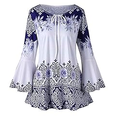 MRULIC Mode Frauen Weihnachten Printing T-Shirt Tops Bluse Spitze Bluse Damen Bluse Vintage Tunika T Shirt Damen Tiefer V-Ausschnitt Hemd