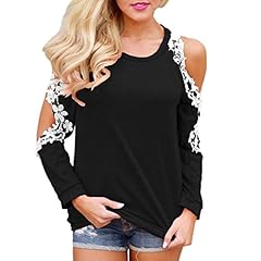 ESAILQ Frauen Schulterfrei Lace Top Langarm Bluse Damen Casual Tops Shirt