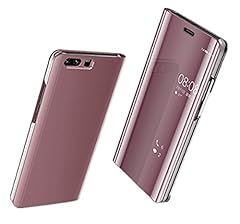 Huawei P10 Hülle, Huawei P10 Lite/P10 Plus Hülle Mirror Case Spiegel Handyhülle PU Leder Flip Case Cover Schutz Echtleder Tasche Etui Lederhülle Schutzhülle für Huawei P10 (Rose Gold, Huawei P10 Plus)