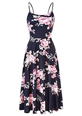 Ehpow Sommerkleid Damen Ärmelloses Blumen Swing Sommerkleid verstellbaren Spagettiträgern Cocktailkleid (Medium, fl2)