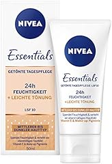 Nivea Essentials Tagespflege 24h Feuchtigkeit + Leichte Tönung mittlerer bis dunkler Hauttyp im 1er Pack (1 x 50 ml), getönte Tagescreme, Feuchtigkeitscreme mit LSF 10