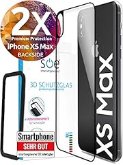 3D Schutzglas 9H Rückseite [Transparent / Schwarz] [2 Stück] kompatibel mit iPhone XS MAX [Panzerglas-Folie] Premium Glas-Schutz, Schablone-Installationshilfe, Hartglas, Montagerahmen,volle Abdeckung