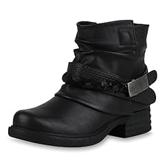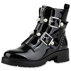 SCARPE VITA Damen Stiefeletten Biker Boots Gefüttert mit Blockabsatz Lack Schnallen