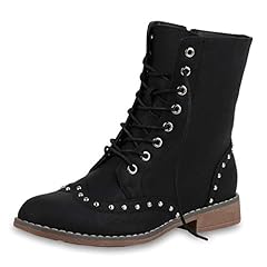 SCARPE VITA Damen Schnürstiefeletten Warm Gefüttert mit Blockabsatz Nieten Profilsohle