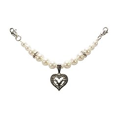 Alpenflüstern Dirndl-Mini-Charivari Trachtenherz Hisch - Hochwertiger Damen-Trachtenschmuck mit Perlen und Trachtenherz Hirsch, Dirndlkette für die Tracht, Creme-weiß DCH041