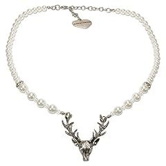 Alpenflüstern Perlen-Trachtenkette Hirsch - Damen-Trachtenschmuck mit Hirsch-Geweih, elegante Dirndlkette creme-weiß DHK203