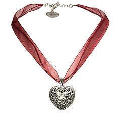 Alpenflüstern Organza-Trachtenkette Trachtenherz - Damen-Trachtenschmuck Dirndlkette dunkel-rot DHK194