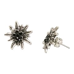 Alpenflüstern Trachten-Ohrstecker Strass-Edelweiß mini - Damen-Trachtenschmuck, Trachten-Ohrringe antik-silber-farben mit Strass-Steinen schwarz DOR033