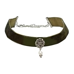 Alpenflüstern Trachten-Samt-Kropfband Frida mit Ornament und Perle Trachtenkette enganliegend, Kropfkette elastisch, Damen-Trachtenschmuck, Samtkropfband breit grün DHK168