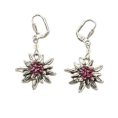 Alpenflüstern Trachten-Ohrhänger Strass-Edelweiß - Damen-Trachtenschmuck, Trachten-Ohrringe antik-silber-farben mit Strass-Steinen pink-fuchsia DOR008