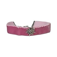 Alpenflüstern Trachten-Samt-Kropfband breit Strass-Edelweiß - Trachtenkette enganliegend, Kropfkette elastisch, Damen-Trachtenschmuck, Samtkropfband rosé-rosa DHK109
