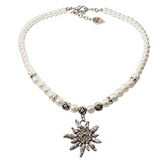 Alpenflüstern Perlen-Trachtenkette Fiona mit Strass-Edelweiß groß - Damen-Trachtenschmuck Dirndlkette Creme-weiß DHK054