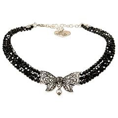 Alpenflüstern Trachten-Perlen-Kropfkette Schleife - verspielte Trachtenkette, eleganter Damen-Trachtenschmuck, Dirndlkette schwarz DHK223