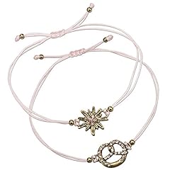 Alpenflüstern Trachten-Armband Set Strass-Edelweiß und Brezel - Damen-Trachtenschmuck mit Antik-Gold-farbener Breze und Edelweiss, Verstellbare Trachten-Armketten Rosé-Rosa DAB052