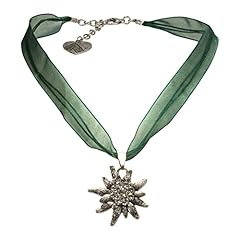 Alpenflüstern Organza-Trachtenkette Strass-Edelweiß - Damen-Trachtenschmuck Dirndlkette grün DHK079