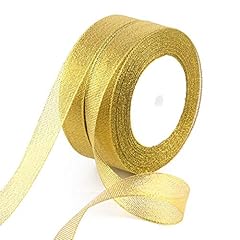 FEPITO 2er Pack 25 Yard 20mm Breite Glitter Goldband Weihnachtsverpackung Band Gold Organza Band für Geschenkverpackung Weihnachtsbaum Dekoration (2 Stück Gold)