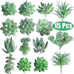 FEPITO 15 Stück Künstliche Sukkulenten Grün Unfotted Faux Blume Sukkulenten Mini Echeveria Picks Bulk Vorbauten für Zuhause Indoor Fairy Garden Dekorationen