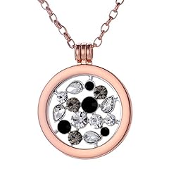 Morella Damen Halskette Rosegold 70 cm Edelstahl mit Anhänger und Coin 33 mm Glitzerwelt schwarz Silber in Schmuckbeutel