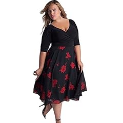VJGOAL Damen Kleid, Frauen Plus Size Mode V-Ausschnitt Floral Maxi Abend Cocktail Party Hochzeit Boho Strand Frühling Sommerkleid (XXXXXL, Rot)