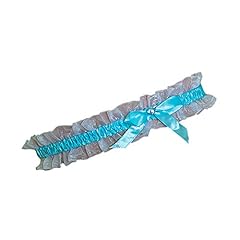 Oblique-Unique® Blau - Weisses Strumpfband mit Schleife und runden Strassstein für Hochzeit