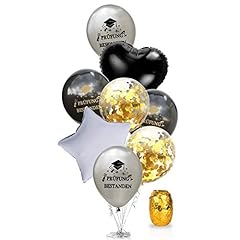 Oblique Unique® Konfetti Folien Luftballon Set Prüfung bestanden für Schulabschluss Abi Abitur Studium Führerschein Abschluss + Herz Stern Ballon - Silber Schwarz Gold Weiß