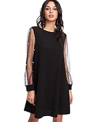 DIDK Damen Minikleider Netz-Ärmeln Lose Elegant Kleid mit Perlen