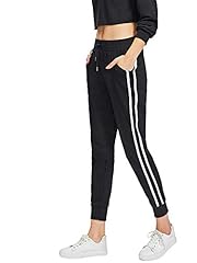 DIDK Damen Hosen Sporthose Casual Streifen Sweathose Elastischer Bund Jogginghose mit Taschen Schwarz#4 S