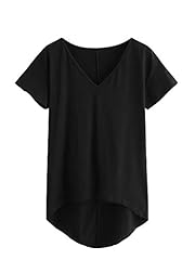 DIDK Damen V-Ausschnitt T-Shirt Kurzarmshirt Einfarbig Tops Casual Oberteile Asymmetrisch Locker Sommer Shirts Tunika Top Reines T-Shirts Schwarz XL