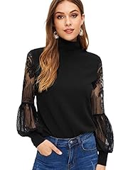 DIDK Damen Stehkragen Langarmshirt mit Spitzenärmeln Einfarbig Oberteil