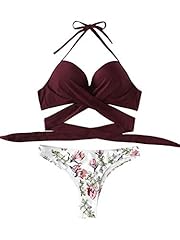 DIDK Damen Bademode Neckholder Push Up Bikini Set Zweiteilige Badeanzug Riangel Oberteil Bandeau Strandmode Sport Split Bikinihose