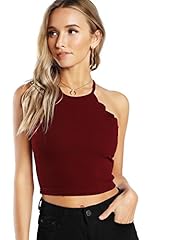 DIDK Damen Crop Top mit Muschel-Kante Spagehtti-Träger Top Oberteil Burgundy S