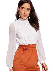 DIDK Damen Elegant Chiffonbluse Stehkragen Einfarbig Langarmshirts Spitzen Blusen