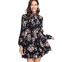 DIDK Damen Kleid Elegant Langarm Blumen Kleider Kurz Knielang Partykleid Casual für Herbst Frühling, Blumen1, M