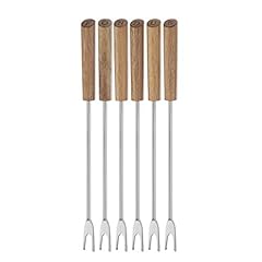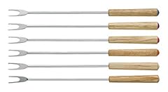 Kela 79169 Fonduegabeln, 6 Stück, Mit Markierung, 24,5 cm Länge, Edelstahl/ Akazie, Messina