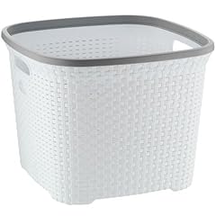 Kela Wäschekorb Rio 40L aus Kunststoff in weiß/grau, Plastik, 43.5 x 43.5 x 33.5 cm