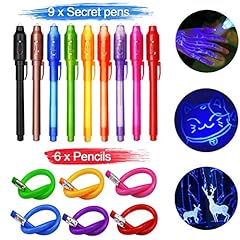 TAGVO 9 Geheimstifte Geheim Stift mit UV Licht + 6 Biegebleistifte Unsichtbar Schreiben Mitgebsel und Spielzeug Fuer Kinder Gastgeschenke Kindergeburtstag für Jungen Mädchen