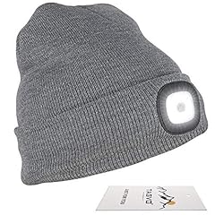TAGVO USB Nachladbare LED Mütze-Kappe, Beleuchtung und blinkende Warnungs-Arten 8 LED, einfache Installation Schnellverwendbare Scheinwerfer-Mütze, Unisex-Winterwärmer-Strickkappe - Schwarz/Grau