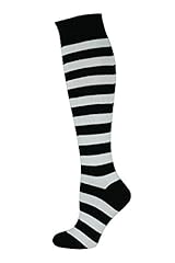 Mysocks Unisex Kniehohe lange Socken Streifen Weiß schwarz