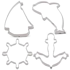 KENIAO Nautisch Ausstechformen Set - 4 Stück - Anker, Segelboot, Ruder und Delphin Ausstecher - Edelstahl