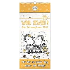 Die Geschenkewelt 45523 sheepworld Partner-Kalender 2019, Wand-Kalender mit 3 Spalten, Kalender 2019 mit 12 Monatsseiten, Kalender für Pärchen