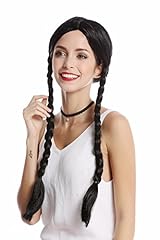 WIG ME UP - 90835-ZA103 Perücke Damen Halloween Karneval schwarz Lange geflochtene Zöpfe Mittelscheitel Lolita Schulmädchen