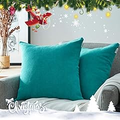 Topfinel Kissenbezüge Einfarbig Chenille für Weihnachtsgeschenk Christmas Gift Dekokissenhülle mit Verstecktem Reißverschluss für Sofa Auto Bett 2er Set 50x50 cm Azurblau