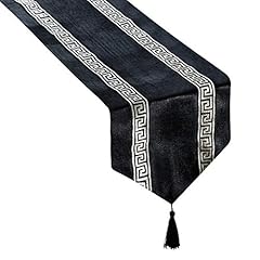 Topfinel Schwerzer Tischläufer mit Quasten für Party Bankett Hochzeitsfeier Weihnachten Fest Tischdecke in Samtoptik Vintages Tischband mit Silberner Stickerei 33x180cm