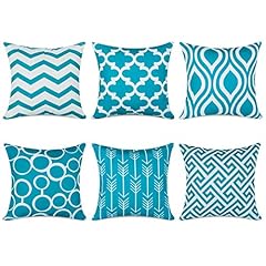 Topfinel 6er Set Kissenbezüge 40x40 cm Qualitäts Kissenhüllen in Segeltuch mit Geometrischen Mustern für Sofa Auto Terrasse Zierkissenbezüge Serie Türkis und Weiß