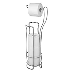 iDesign Klopapierhalter mit Ersatzrollenhalter, schmaler & freistehender Toilettenpapierständer aus Metall, Toilettenpapierhalter stehend für 4 Rollen, silberfarben