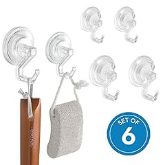 iDesign Power Lock Handtuchhaken, Badezimmerhaken aus Kunststoff, 6er-Set Haken mit Saugnapf, durchsichtig