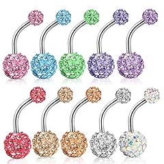 HBselect Bauchnabelpiercing silbrig mit völligem Kristall aus Edelstahl Körper Piercing Schmuck (Farbiger Kristall 10 pcs)