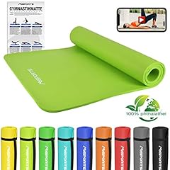 Gymnastikmatte Premium inkl. Übungsposter + Tragegurt + Workout App GRATIS | Hautfreundliche - Phthalatfreie Fitnessmatte - Lindengrün - 190 x 100 x 1,5 cm - sehr weich - extra dick | Yogamatte